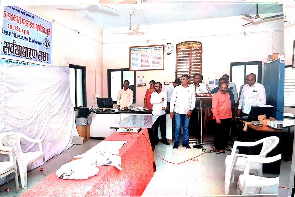पतसंस्थेच्या वार्षिक सभेमध्ये प्रश्नोत्तर सत्र चालू असताना पदाधिकारी व सभासद यांचा सहभाग.